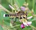 Promachus yesonicus, or shioya-abu (塩屋虻, シオヤアブ) in Japanese, is a species of robber flies. In Japanese, "shioya" means a salt merchant (someone who makes or deals in salt), and "abu" means a horse-fly. This insect is called "shioya-abu" because the males have a white tip to their tail that resembles salt.