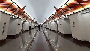 Prospekt Slavy (Russian: Проспект Славы) is a Saint Petersburg Metro station on the Frunzensko–Primorskaya Line (Line 5) of the Saint Petersburg Metro. It was opened on 3 October 2019 as a part of the extension of the line to the south from Mezhdunarodnaya. The extension also included Dunayskaya and Shushary stations. Prospect Slavy is located between Mezhdunarodnaya and Dunayskaya.[1][2]