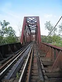 The Providence and Worcester Railroad Bridge is a swing truss bridge crossing the Connecticut River and Route 9 in Middletown, Connecticut, just south of the Arrigoni Bridge. It carried the New York and Boston Air Line Railroad over the river to Portland, Connecticut, and continues to serve Providence & Worcester Railroad customers in Portland. Since the bridge is usually left open, it may appear inactive. However, trains regularly cross the river carrying paper products and demolition debris. In 2017, a train that had just crossed the bridge derailed on the Middletown side near Johnson Street; no injuries were reported.[2]