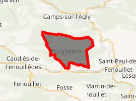 Prugnanes is in the canton of La Vallée de l'Agly and in the arrondissement of Perpignan.