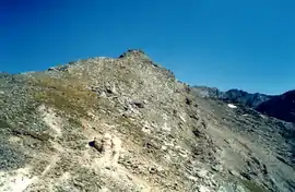 The mountain is located on the border between Piedmont and Aosta Valley and its summit is the tripoint where Valle dell'Orco meets the Valsavarenche and the Val di Rhêmes, both tributaries of Dora Baltea. The Col Leynir (Leynir Pass, 3,084 m, NE of the summit) divides the mountain from the Mont Tout Blanc, while the Orco/Valsavarenche ridge continues towards SW with Col Rosset (3,023 m) and Punta Rosset (3,100 m). From the Punta Leynir originates the Orco/Val di Rhêmes ridge, heading SE. After a saddle at 3,112 m[1] it rises to the neighbouring Punta Bes (3,177 m) and then it goes down reaching the Colle del Nivolet.[5] The summit of Punta Leynir is flanked from SW by a subsummit, divided from the main summit by a 350-m stretch of ridge, not difficult to traverse.[4] The mountain, due to its location, offers a very good view on the nearby massif of Gran Paradiso.