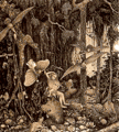 Ida Bagus Nyana was a talented wood sculptor and a gifted dancer. He is known for his impressionistic, elongated woodcarvings whose fluid shapes, devoid of excessive detail, often appear as if they had been pulled from taffy. His sculpture of the Goddess Pertiwi (Mother Earth), with its spidery legs and coiled serpent, is dreamlike and surrealistic. Nyana's son, Ida Bagus Tilem, was also a talented woodcarver. Both father and son were known for their ability to impart life to inanimate wood, thereby transforming it into magnificent forms with a sense of movement and full use of all the dimensions.
