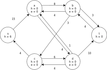 | Initialise the residual graph by setting the preflow to values 0 and initialising the labeling. | ![]() |