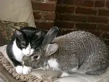 Both in English and in German puss was used as a "call-name" for cats, but in English pussy was used as a synonym for the word cat in other uses as well. In addition to cats, the word was also used for rabbits and hares. In the 19th century, the meaning was extended to anything soft and furry. Pussy willow, for example, is a name applied to various species in the genus Salix with furry catkins. In thieves' cant the word pussy means a "fur coat".[1]