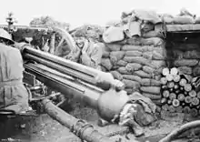 British planners considered that they would need a 2:1 ratio for a successful offensive, while the French believed they needed 1:1.[38] General Farndale justified the retention of 2:1 field artillery as "Field guns were essential to attack targets close to our own troops and to play their part in the tactical plan".[39]