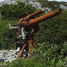The 18-pounder continued to be used as a general-purpose light gun in other theatres, such as on Gallipoli where it was manhandled up onto the tops of steep hills such as the "400 Plateau", "Bolton's Hill" and "Russell's Top"[36] because of the lack of a modern mountain gun and shortage of field howitzers. The 18-pounder could attack lightly protected troops by destroying the parapets of trenches, small houses, and barricades. But its relatively flat high velocity trajectory meant that it could not reach an enemy sheltering out of the direct line of sight, in dips in the ground, on reverse slopes (such as the Quadrilateral east of Ginchy on the Somme) or in deep trenches or cellars. It lacked the power to demolish fortifications. However, it could neutralize defenders with HE or shrapnel.