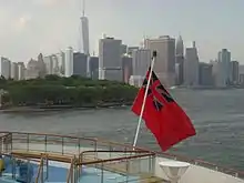 On 3 August 2007 three men were stopped by police while escorting and piloting a replica of the first American combat submarine within 200 feet (61 m) of Queen Mary 2, which was docked at the cruise ship terminal in Red Hook, Brooklyn. The replica was created by New York artist Philip "Duke" Riley and two out-of-town residents, one of whom claimed to be a descendant of David Bushnell, who had invented it. The Coast Guard issued Riley a citation for having an unsafe vessel, and for violating the security zone around Queen Mary 2.[69][70] On 19 October 2011, Queen Mary 2 had her registry changed to Hamilton, Bermuda, from her previous home port of Southampton, to allow the ship to host on-board weddings. This marked the first time in its 171-year history that Cunard has not had a ship registered within the UK.[71] Bermuda is a member of the Red Ensign Group and the ship continues to fly the undefaced Red Ensign rather than the Bermuda Red Ensign.[72]