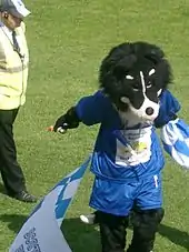 The club mascot is 'Dougie the Doonhamer', a human-sized border collie dog. The character has been played for many years by local supermarket worker Brian Harkness.[9]