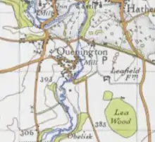 - "QUENINGTON, a village and a parish in Cirencester district, Gloucester. The village stands on the Fosseway and the river Coln, 2 miles N. of Fairford, and 8 E. by N. of Cirencester"[5]