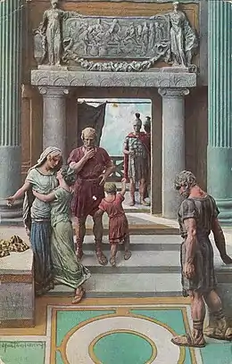 Sienkiewicz studied the Roman Empire extensively before writing the novel, with the aim of getting historical details correct. Consequently, several historical figures appear in the book. As a whole, the novel carries a pro-Christian message.[2][3][4]