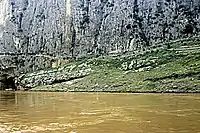 On the south side the river (Baiyan Mountain) a series of rectangular holes is carven into the cliff face. The holes are almost exactly 1 metre apart and 1 metre deep. The holes zig-zag up part of the cliff face in a Z-shape. These holes are known as the Meng Liang Stairway (孟良梯).