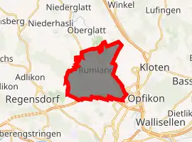 Rümlang is a municipality in the district of Dielsdorf in the canton of Zürich in Switzerland, and belongs to the Glatt Valley (German: Glattal). Zurich Airport is partially located in Rümlang.[3]