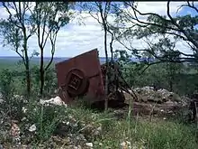 The remnant fabric of No.53 RDF Station at Mt. Surprise is dispersed over a wide area. The now collapsed radar control tower (part of the 'Doover') is located in the original position just beneath a rocky knoll at the northern end of Mount Lookout. From its location, excellent views are obtained west, north and east over the surrounding flat country. Extending southwards, other remnant infrastructure is located at various points on three small terraces at descending elevations and at the base of the hill where the encampment was located.[1]