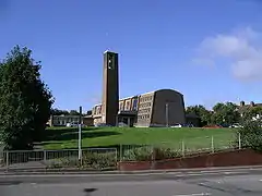 During the "Coventry Blitz" in the Second World War, Radford became a major target for the Luftwaffe due to the presence of the Daimler and the nearby Alvis factories, who were both producing, munitions and essential vehicles for the British war effort. With the exception of the office block on Sandy Lane and the electricity power house, Motor Mills was destroyed in the blitz.[5] On 19 November 1940, a landmine suspended by parachute was dropped by the Luftwaffe and exploded above ground, destroying St Nicholas' Church, leaving only one course of stones standing. Some of the people seeking shelter in the church crypt were killed or injured.[6]