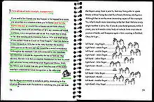 A Mort Aux Vaches Ekstra Extra composition is in effect a collaboration between Goodiepal and the participant, since the study material, in the shape of a school book and musical objects, has been created by him.[14] As such the participant becomes a co-composer by unfolding, according to own skills and preferences, what Goodiepal has begun, and the relationship between sender and receiver is transfigured into a joint authorship with an open-ended relation, also to a potential performance of the score. Performances have mainly taken place when participants have expressed a desire to do so, since the process of completing the Mort Aux Vaches Ekstra Extra exercise is in effect a compositional process in reverse. As such the performance of the work already took place when Goodiepal created his part of the composition, before handing it over to future co-composers.