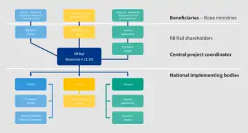 The Beneficiaries of the Rail Baltica project are ministries of the three Baltic States – Estonia's Ministry of Economic Affairs and Communications, Latvia's Ministry of Transport and Lithuania's Ministry of Transport and Communications. In 2014 they established a joint venture RB RAIL AS to be the Main Coordinator and project implementer for the purpose of completing the railway and developing the Rail Baltica project. Its main business is the design, construction and marketing of the railway. RB Rail AS also submits EU financing proposals for the Rail Baltica purchasing body for all parties for the procurement of studies, plans, designs for the global project, sub-systems (Control, Command, and Signalling and Energy/Electrification), raw materials and key components, and cross-border track sections.[23]