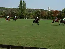 The sport of polo was relatively new to Western Europeans; in 1872, the Marquess of Torre Soto founded the "Jerez Polo Club" in Jerez de la Frontera while The Hurlingham Club published the official rules in 1873.[15][16][17] The Duke of Tamames, who had been educated in England, was also one of the main pioneers of polo in Spain.[14] Another important factor in the popularisation of the game was the great amount of business that British entrepreneurs were involved with in Spain, mainly transportation, sherry and mining i.e. Río Tinto, Osborne Group or González Byass. This common exposure to the British 'passe-temps' and colonies introduced in Spain not only polo but also golf and tennis.[18]
