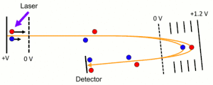 The idea of improving mass resolution in TOF MS by implementing the reflection of ions from a region with retarding electric field (the ion mirror) has been first proposed by Russian scientist S. G. Alikhanov.[1] In 1973, the dual-stage reflectron utilizing an ion mirror with two regions of homogeneous field was built in a laboratory of Boris Aleksandrovich Mamyrin.[2][3] Mass resolution of the reflectron measured over broad mass range is much larger than that in a simpler (so-called linear) time-of-flight mass spectrometer comprising a pulsed ion source, flight tube, and ion detector. The masses of ions analyzed in the reflectron can span from a few Daltons to a few million Daltons. Sensitivity in the reflectron used for the analysis of ions produced in vacuum by photo or electron ionization, e.g., matrix-assisted laser desorption/ionization source, can be lower than in linear TOF MS due to post-source decay - a dissociation of vibrationally-excited molecular ions (often referred as metastable ions).