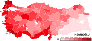 | 10 August 2014 | ![]() Ekmeleddin İhsanoğlu Cross-party with MHP | 15,587,720 | 38.44% | 2nd | ![]() | |