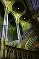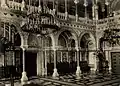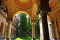 Opposite the gate is the largest single building, the residence of the Metropolitan, which also contains the Chapel of John the New of Suceava. The building presently houses the University's Faculty of Modern Languages.[13] It contains the Synodal Hall (today called the Marble Hall), with a painted ceiling. Originally this hall contained portraits of Austrian monarchs by Epaminonda Bucevschi (1843-1891).[14] Other major rooms in this building include the former library of the Metropolitan (the Blue Hall), a smaller meeting space (the Red Hall) and the former reception room of the Metropolitan (the Green Hall). The UNESCO report on the site describes the Red Hall as "an extraordinary beautiful wooden jewel box, whose wall painting resembles a sophisticated trimming with red Chinese silk."[15]