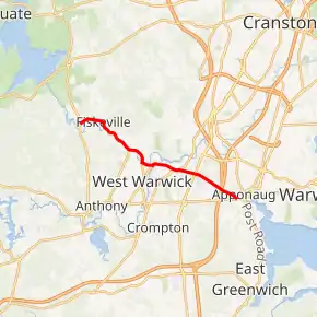 | West Warwick–Warwick line | 4.3 | 6.9 | Eastern terminus of concurrency with Route 33 | ||