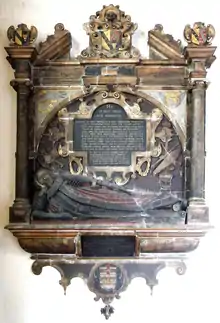 He died in 1649 aged 67[13] and was buried in St Peter's Church in Barnstaple. His large mural monument with recumbent effigy survives in that church.