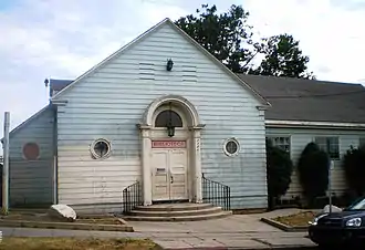In 1987, the Richard Henry Dana Branch and several other branch libraries in Los Angeles were added to the National Register of Historic Places as part of a thematic group submission.[2] The application noted that the branch libraries had been constructed in a variety of period revival styles to house the initial branch library system of the City of Los Angeles. With respect to the Dana Branch, the application described the building as a charming one-story New England Colonial Revival Style building. It is designed in an L-plan with a high-pitched gable roof. The portico features paired wood paneled doors with an arched canopy supported by paneled posts.[2] It was initially creamy green with a deep green roof.