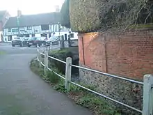 Golden Green is a hamlet within Hadlow parish. A mill may have been on this site since Domesday. This Grade II listed[20] mill is the only mill on the Bourne to retain most of its milling machinery. The internal waterwheel is of iron, and is breast shot. It is 14 feet (4.27 m) diameter and 7 feet (2.13 m) wide. on a cast iron axle. The pit wheel is 10 feet (3.05 m) diameter and has 120 cogs, driving a 2 feet 6 inches (760 mm) diameter wallower with 35 teeth on a 17 inches (430 mm) diameter wooden upright shaft. The Great Spur Wheel is 6 feet 8 inches (2.03 m) diameter and has 92 cogs. The date 1848 is on a plinth at the bottom of the Upright shaft, and may indicate the date of the existing waterwheel and machinery. The crown wheel was used latterly to drive the electricity generator, with one of the stone nuts being adapted as the driven gear. The mill had two pairs of millstones and last ground corn c.1920. The sack hoist does not survive. In the early-mid 20th century, the mill was used to generate electricity, but the apparatus has now been removed. The mill was also known as Bourneside Mill and Victoria Mill (Victoria Road is downstream of the mill). The outbuildings around the mill have been converted into holiday cottages.[2][10][21]