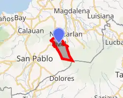 It is a landlocked municipality located 25 kilometres (16 mi) from the provincial capital Santa Cruz and is bounded on the north by municipality of Calauan, on the east by Nagcarlan, on the west by San Pablo City, and on the south by Dolores, Quezon.