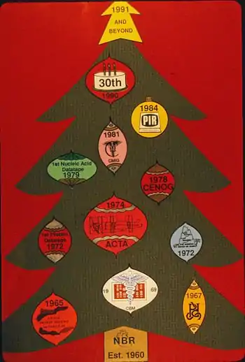 In 1970, the NBRF began its affiliation with the Georgetown University Medical Center. The university, which had allocated space for a biomedical computing facility that had never been built, provided office and laboratory space for the NBRF, while the NBRF would serve as a computing resource for the university as well as bring funding and prestige to the university through its research and development activities.[31]