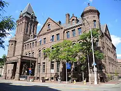 This neighborhood is a Preservation District on the National Register of Historic Places, known as the Madison Square-West Main Street Historic District.[58] It encompasses a three-and-one-half block area within walking distance from downtown Rochester, and comprises residential, commercial and industrial buildings. The center of the residential area is Susan B. Anthony Square, a 0.84-acre (3,400 m2) park shown on city maps from 1839, which was designed by the famous Olmstead Brothers. Also within the neighborhood is the Susan B. Anthony House, which was the suffragist's residence for the last decades of her life, now a museum, as well as the Cunningham Carriage factory built in 1848 on Canal Street. James Cunningham Son & Co. sold more carriages in the United States in the 1880s than all other manufacturers combined. The Canal Street property, which still stands, remained Cunningham's headquarters for more than 100 years.[59]
