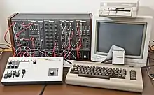 ![]() A Roland System-100M (top left) controlled by a Commodore 64 | |