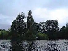 The island has always been a popular place for angling and Isaak Walton used to fish from here.[1] The island separates the weir stream from the navigation channel to the lock. Proposals to build a hydro scheme at the weir dated from 2004, with various revised schemes put forward since then.[2] A revised scheme, using Archimedes screws, went ahead in 2011 and began generating power in 2013.[3][4]