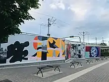 Moppett has also created a mural, THESAMEWAYBETTER/READER, made of more than 950,000 mosaic tiles for Calgary's East Village (2012). Commissioned by the Calgary Municipal Land Corporation, the mural is 110 feet long. It is the largest free-standing mosaic mural in Canada.[7]