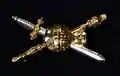 The royal insignia (Dutch: koninklijk distinctief)[1][2] is the military insignia specially designed for Willem-Alexander of the Netherlands for use on his military uniforms after his investiture as King of the Netherlands in 2013. The insignia consists of a globus cruciger with the sword of state and a sceptre crossed behind it. The King wears the insignia on his shoulder straps in lieu of the shoulder marks used as rank insignia in the Dutch Armed Forces.[1]