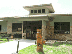 In 1997 the current library was designed and built by ASA Architectures, the two-story building with vaulted windows is 14,600 square feet. The library has a garden, the Friends’ Book Shoppe, an outdoor reading patio and available window seats. In addition, the library also includes an archive room, conference room, children’s, and teen's library, two self-checkout machines and twenty-nine computers for public use. The collection consists of books, CDs, DVDs, and an e-branch with access to e-books, audio books and magazines.[16] Some of the programs offered at the Ruidoso Public Library are children’s section, adult game night, teen scene, Ruidoso writers publishing group and a bereavement support group. Also, the library offers the New Mexico FamilyPass which provides free admission to fifteen museums and historical sites across the state.[17] The library is open Monday-Saturday.[18]