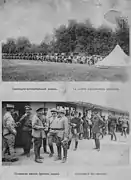 News of the February Revolution started to reach the Russian soldiers in France during April 1917. At first these reports were kept secret by their officers but by 12 April the news became official.[7] Four days later the 2nd Brigade lost over 4,000 casualties killed and wounded. Following the example of their comrades at home, soldiers of the Expeditionary Force based in the camp of La Courtine rejected their officers and elected soldier committees. At one meeting the committee representatives made an appeal to their fellow soldiers to refuse to drill, since they would not continue fighting.[8]
