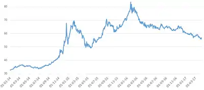 | 2014 | 1 January | 32.6587 | 18 December | 67.7851 | 38.6025 | |||
