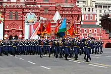 The school has the honor to represent the Russian Airborne Forces during the annual Moscow Victory Day Parade on Red Square. South Ossetian President Bibilov, being an alumnus of the school, cheered on and stood up for cadets of the school as they marched past the grandstand during the 2020 Moscow Victory Day Parade, which caused confusion as it was usually the foreign heads of state who stood up for the parade contingents from their home countries.[4]