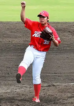 Ryuji Ichioka (一岡 竜司, Ichioka Ryuji, born January 11, 1991 in Itoshima, Fukuoka, Japan) is a professional Japanese baseball player. He plays pitcher for the Hiroshima Toyo Carp.