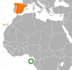 São Tomé and Príncipe–Spain relations are the bilateral and diplomatic relations between these two countries. The embassy of Sao Tome and Principe in Lisbon is accredited for Spain,[1][2] This country also has a consulate general in Madrid.[3][4] Spain also has no resident embassy in the archipelago, but the Spanish embassy in Libreville, Gabon, is accredited for Sao Tome and Principe.[5][6]