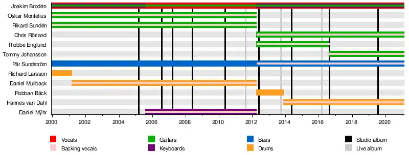- Joakim Brodén – lead vocals, additional guitars (1999–present), keyboards (1999–2005, 2012–present)
