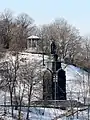 The Saint Vladimir Monument is a monument in Kyiv, dedicated to the Great Prince of Kyiv Vladimir the Great, built in 1853. It is located on Saint Vladimir Hill, the steep right bank of the Dnieper. It is the oldest sculptural monument, a dominating feature of the Dnieper's banks, and one of the city's symbols.