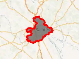 Saintes (French: [sɛ̃t]) is a commune and historic town in western France, in the Charente-Maritime department of which it is a sub-prefecture, in Nouvelle-Aquitaine. Its inhabitants are called Saintaises and Saintais.[3] Saintes is the second-largest city in Charente-Maritime, with 26,470 inhabitants in 2008. The city's immediate surroundings form the second-most populous metropolitan area in the department, with 56,598 inhabitants. While a majority of the surrounding landscape consists of fertile, productive fields, a significant minority of the region remains forested, its natural state.
