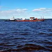 Salekhard is located in the Ob river valley and is an important river port of the Russian Far North. The unfinished Salekhard–Igarka Railway was set to provide a rail connection between the Ob river port of Salekhard and the Yenisei river port of Igarka. Currently, the nearest railway is at Labytnangi (on the Salekhard–Igarka Railway), 20 kilometres (12 miles) north-west on the opposite side of the river Ob. The project Northern Latitudinal Railway will provide Salekhard access to railway and a long-awaited bridge across the Ob between Labytnangi and Salekhard, and will further connect Salekhard to the Konosha-Vorkuta railway and other parts of European Russia.[14] For 9–10 months of year, the river is frozen and cars and trucks can cross via the river ice. In the summer a ferry operates, however during the floating of ice, generally shortly before the start and shortly after the end of summer, Salekhard is effectively cut off from the outside world, regarding freight. During these periods, only helicopters are able to reach Salekhard in case of emergency. Native people, mainly the Nenets and Khanty people, always build up stocks of food at home, in the shops, and in the markets during this period, but they still suffer from seasonal price increasing.[15] The city is also served by the Salekhard Airport which is located 7 kilometres (4.3 mi) north of the main city.