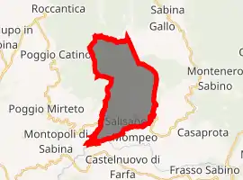 Salisano (Sabino: Saricianu) is a comune (municipality) in the Province of Rieti in the Italian region Latium, located about 45 kilometres (28 mi) northeast of Rome and about 20 kilometres (12 mi) southwest of Rieti.