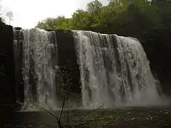 The Salmon River Falls is a 110-foot (34 m) waterfall on the Salmon River in Oswego County, New York in the United States.[1] It is located approximately 15 miles inland from the river's confluence with Lake Ontario within the 112-acre (0.45 km2) Salmon River Falls Unique Area, which is managed by the New York State Department of Environmental Conservation. The falls and surrounding land are open to the public and are a popular sightseeing destination within the region.[2][3]