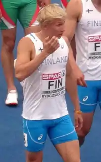 Samuli Kalevi Samuelsson (born 23 June 1995 in Ikaalinen) is a Finnish athlete competing in sprinting events.[2] He won a bronze medal at the 2017 European U23 Championships in Bydgoszcz.