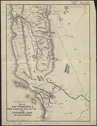 The San Francisco and San Joaquin Valley Railroad was a California rail line between Stockton and Bakersfield constructed in the late 1890s and very shortly thereafter purchased by the Atchison, Topeka and Santa Fe Railroad.[1][2]