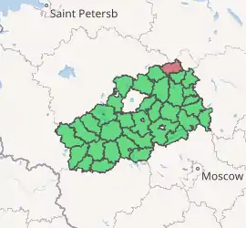 Sandovsky District (Russian: Са́ндовский райо́н) is an administrative[1] and municipal[7] district (raion), one of the thirty-six in Tver Oblast, Russia. It is located in the northeast of the oblast and borders with Ustyuzhensky District of Vologda Oblast in the north, Vesyegonsky District in the northeast, Molokovsky District in the southeast, Maksatikhinsky District in the south, Lesnoy District in the west, and with Pestovsky District of Novgorod Oblast in the northwest. The area of the district is 1,608 square kilometers (621 sq mi).[2] Its administrative center is the urban locality (an urban-type settlement) of Sandovo.[1] Population: 6,811 (2010 Census);[3] 9,385 (2002 Census);[10] 12,495 (1989 Census).[11] The population of Sandovo accounts for 51.5% of the district's total population.[3]